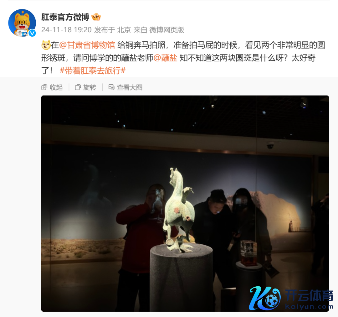 肛泰官方微博发出的疑问,据说在博物馆内,即使是复成品也照实的复原了马屁股上的圆斑(图片来源:肛泰官方微博@weibo)