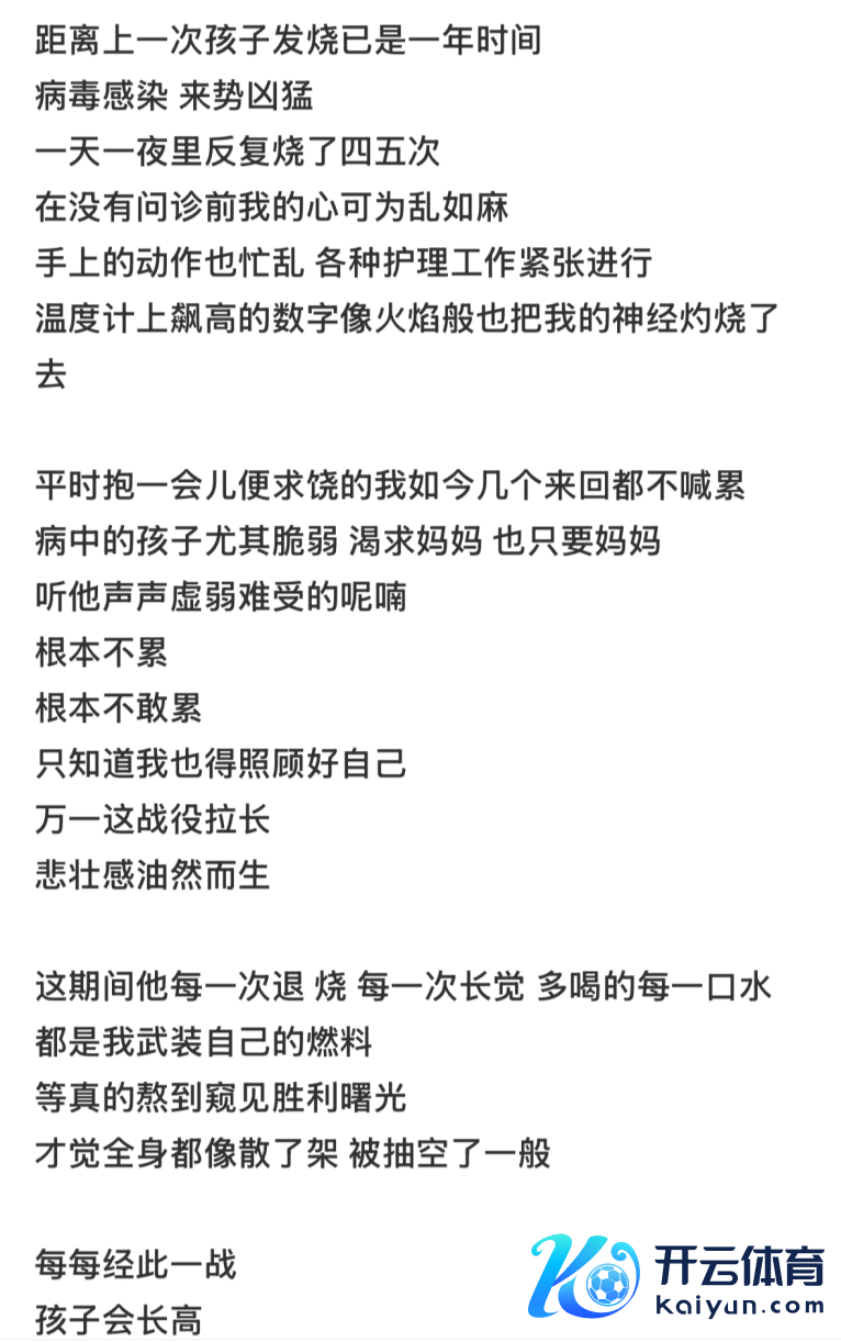 我看网上也有姆妈说我方的心路进程,孩子病毒感染,夜里反复烧,一会儿要去量体温、一会儿喂孩子喝水、一会儿抱着哄睡,比及孩子透顶退烧了,紧绷的弦儿才略透顶迟滞。