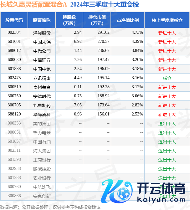 长城久惠生动设立搀和A为搀和型-生动基金,字据最新一期基金季报露馅,该基金钞票设立:股票占净值比93.01%,债券占净值比15.64%,现款占净值比0.83%。基金十大重仓股如下: