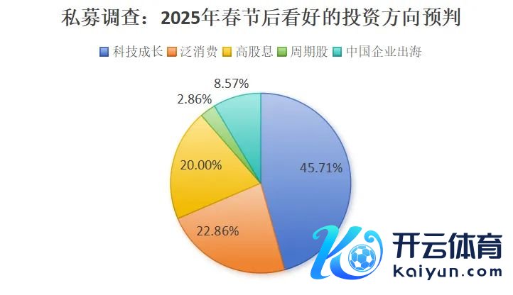 至于2025年春节后看好的投资场所,据私募排排网看望效果,45.71%的私募看好科技成长场所,如AI(东谈主工智能)、想象机、东谈主形机器东谈主、智能驾驶、篡改药等;22.86%的私募看好泛蹧跶场所,尤其是新兴蹧跶、受益于政策补贴的传统蹧跶等;20%的私募看好高股息场所,包括银行、保障、公用行状等;8.57%的私募看好中国企业出海场所,诸如国际有上风产能和作事的制造业企业或作事性企业;2.86%的私募看好周期股场所,包括贵金属、有色、石油、煤炭等。