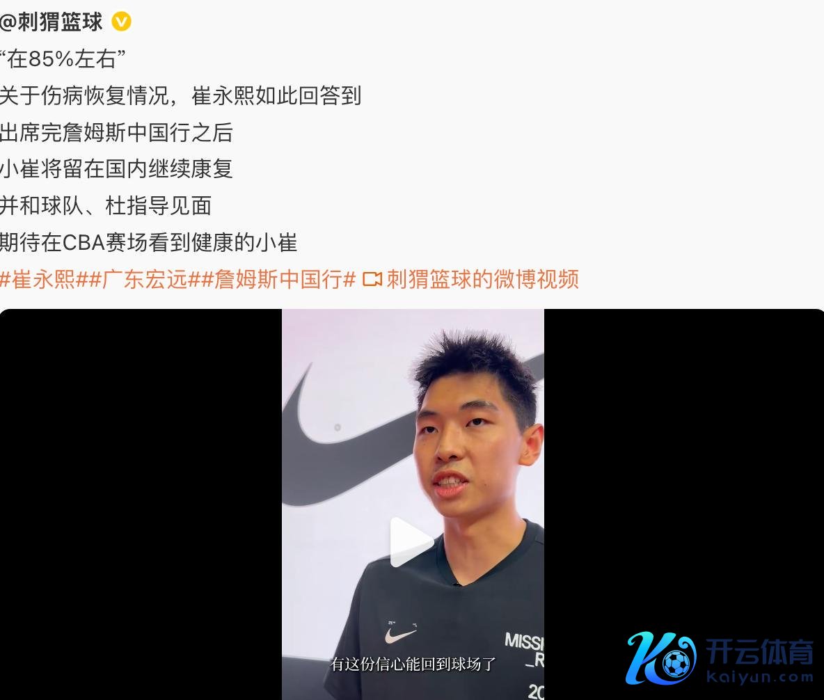 其中休赛期官宣加盟广东男篮之后,对于许多广东球迷来说,最眷注的话题应该即是崔永熙当今的伤病规复的何如样了,新赛季到底什么时候大概为广东男篮出战比赛体育游戏app平台,他又能否具备好的情景来为广东队争夺冠军了。对于这些问题,崔永熙在最近回到国内之后,禁受了媒体的采访,一说念作念了解答。
