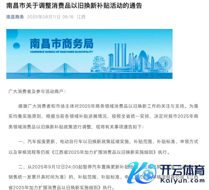 就在9月,江西多地发布《对于调遣粉碎品以旧换新补贴行径的晓喻》,宣布自9月12日24:00起暂停汽车置换更新补贴行径。